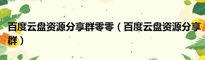 百度云盘资源分享群零零(百度云盘资源分享群)