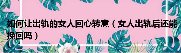 如何让出轨的女人回心转意(女人出轨后还能挽回吗)