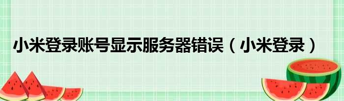 大家好,小活来为大家解答以上问题。小米登录账号显示服务器错误,小米登录很多人还不知道,现在让我们一起来看看吧!