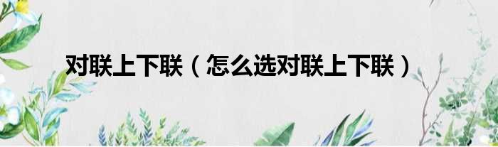 大家好,小活来为大家解答以上问题。对联上下联,怎么选对联上下联很多人还不知道,现在让我们一起来看看吧!