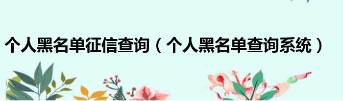 大家好,小活来为大家解答以上问题。个人黑名单征信查询,个人黑名单查询系统很多人还不知道,现在让我们一起来看看吧!