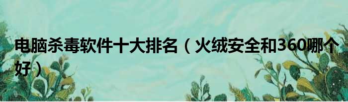 导读 大家好,小活来为大家解答以上问题。电脑杀毒软件十大排名,火绒安全和360哪个好很多人还不知道,现在让我们一起来看看吧!1、天鹅绒是一个