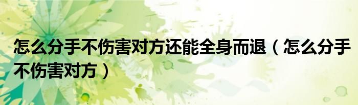 怎么分手不伤害对方还能全身而退(怎么分手不伤害对方)