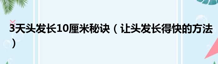 3天头发长10厘米秘诀(让头发长得快的方法)