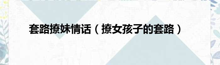 大家好,小活来为大家解答以上问题。套路撩妹情话,撩女孩子的套路很多人还不知道,现在让我们一起来看看吧!