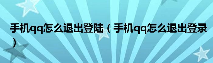 手机qq怎么退出登陆(手机qq怎么退出登录)