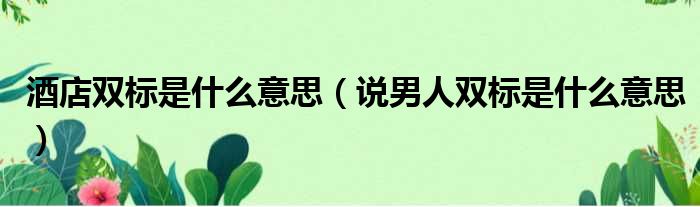 导读 大家好,小活来为大家解答以上问题。酒店双标是什么意思,说男人双标是什么意思很多人还不知道,现在让我们一起来看看吧!1、你是双重标准