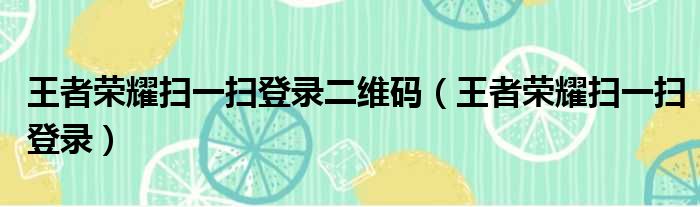 王者荣耀扫一扫登录二维码(王者荣耀扫一扫登录)