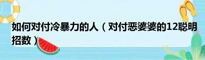 如何对付冷暴力的人(对付恶婆婆的12聪明招数)