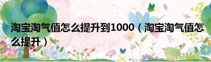 淘宝淘气值怎么提升到1000(淘宝淘气值怎么提升)