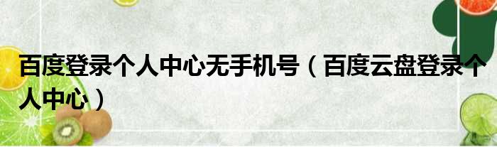 百度登录个人中心无手机号(百度云盘登录个人中心)