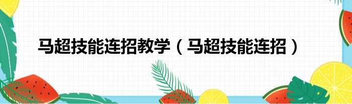 马超技能连招教学(马超技能连招)