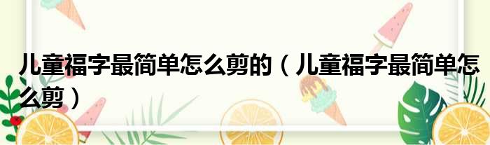 儿童福字最简单怎么剪的(儿童福字最简单怎么剪)