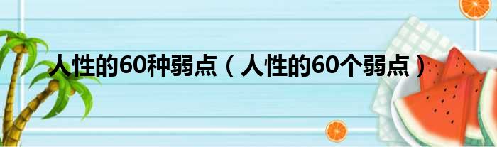 大家好,小活来为大家解答以上问题。人性的60种弱点,人性的60个弱点很多人还不知道,现在让我们一起来看看吧!