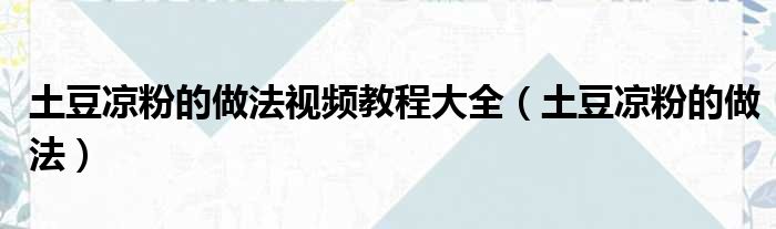 土豆凉粉的做法视频教程大全(土豆凉粉的做法)