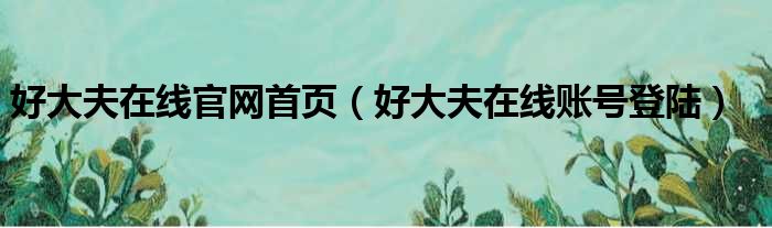 好大夫在线官网首页(好大夫在线账号登陆)