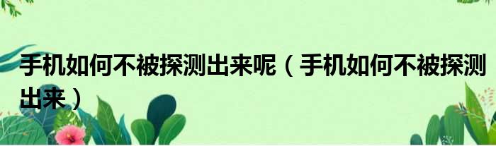 手机如何不被探测出来呢(手机如何不被探测出来)