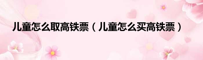 儿童怎么取高铁票(儿童怎么买高铁票)