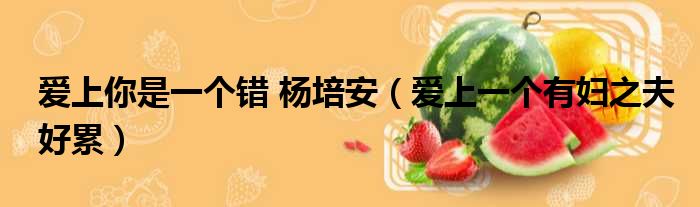 大家好,小活来为大家解答以上问题。爱上你是一个错 杨培安,爱上一个有妇之夫好累很多人还不知道,现在让我们一起来看看吧!
