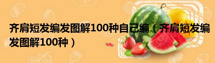 导读 大家好,小活来为大家解答以上问题。齐肩短发编发图解100种自己编,齐肩短发编发图解100种很多人还不知道,现在让我们一起来看看吧!1、公