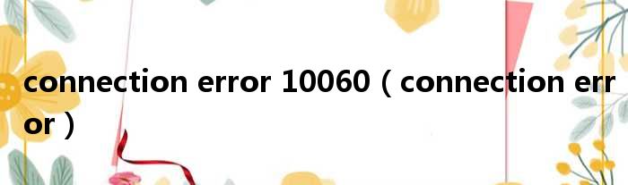 大家好,小活来为大家解答以上问题。connection error 10060,connection error很多人还不知道,现在让我们一起来看看吧!