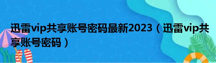迅雷vip共享账号密码最新2023(迅雷vip共享账号密码)
