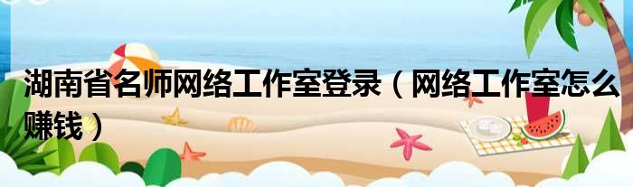 湖南省名师网络工作室登录(网络工作室怎么赚钱)
