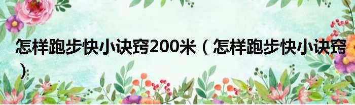 怎样跑步快小诀窍200米(怎样跑步快小诀窍)