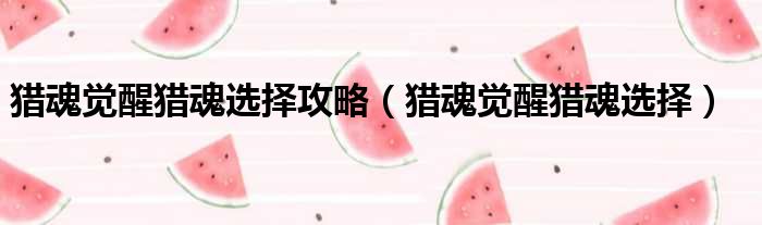 猎魂觉醒猎魂选择攻略(猎魂觉醒猎魂选择)