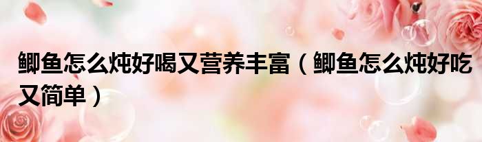 鲫鱼怎么炖好喝又营养丰富(鲫鱼怎么炖好吃又简单)
