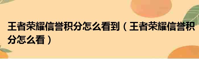 王者荣耀信誉积分怎么看到(王者荣耀信誉积分怎么看)