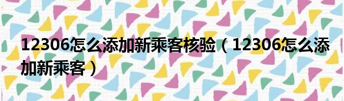 12306怎么添加新乘客核验(12306怎么添加新乘客)