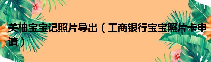 美柚宝宝记照片导出(工商银行宝宝照片卡申请)