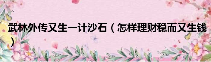 武林外传又生一计沙石(怎样理财稳而又生钱)