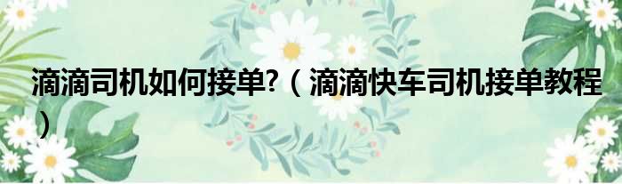 滴滴司机如何接单?(滴滴快车司机接单教程)