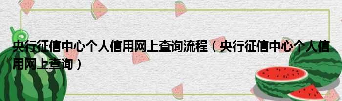 央行征信中心个人信用网上查询流程(央行征信中心个人信用网上查询)