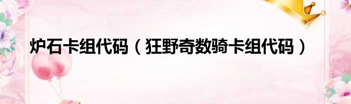 大家好,小活来为大家解答以上问题。炉石卡组代码,狂野奇数骑卡组代码很多人还不知道,现在让我们一起来看看吧!