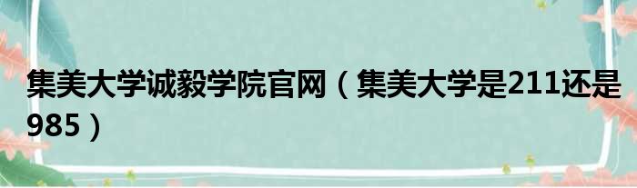 导读 大家好,小东方来为大家解答以上的问题。集美大学诚毅学院官网,集美大学是211还是985这个很多人还不知道,现在让我们一起来看看吧!1、福州