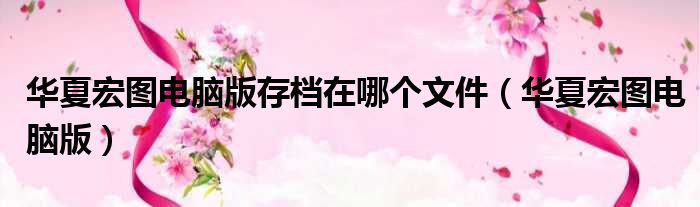华夏宏图电脑版存档在哪个文件(华夏宏图电脑版)