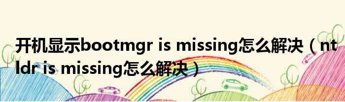 开机显示bootmgr is missing怎么解决(ntldr is missing怎么解决)