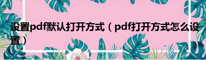 设置pdf默认打开方式(pdf打开方式怎么设置)