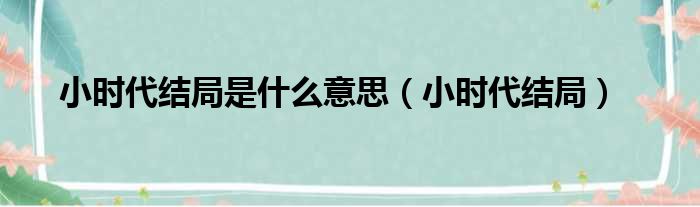大家好,小东方来为大家解答以上的问题。小时代结局是什么意思,小时代结局这个很多人还不知道,现在让我们一起来看看吧!