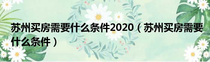 苏州买房需要什么条件2020(苏州买房需要什么条件)