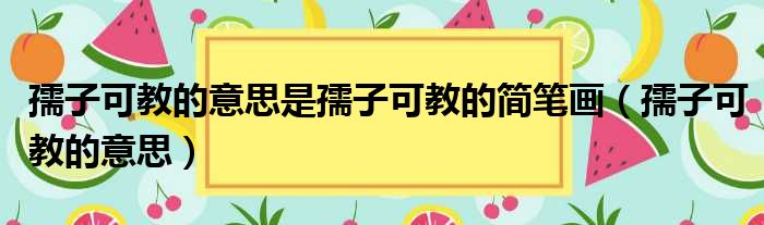孺子可教的意思是孺子可教的简笔画(孺子可教的意思)
