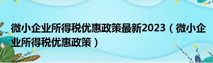 微小企业所得税优惠政策最新2023(微小企业所得税优惠政策)