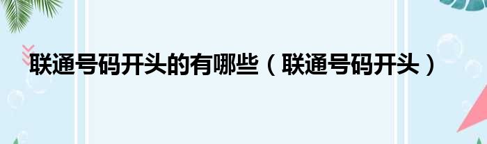 导读 大家好,小东方来为大家解答以上的问题。联通号码开头的有哪些,联通号码开头这个很多人还不知道,现在让我们一起来看看吧!1、联通的号段目