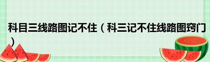 大家好,小活来为大家解答以上问题。科目三线路图记不住,科三记不住线路图窍门很多人还不知道,现在让我们一起来看看吧!