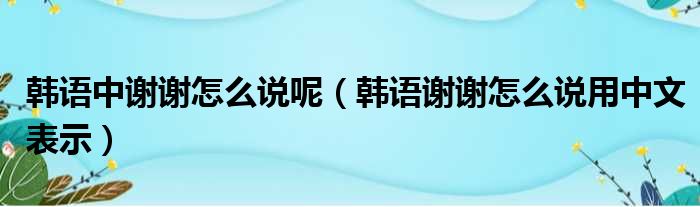 韩语中谢谢怎么说呢(韩语谢谢怎么说用中文表示)