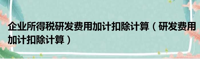 企业所得税研发费用加计扣除计算(研发费用加计扣除计算)