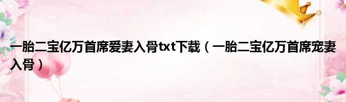 一胎二宝亿万首席爱妻入骨txt下载(一胎二宝亿万首席宠妻入骨)